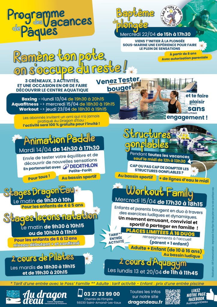 À l’occasion des vacances de printemps, le Centre Aquatique Le Dragon d’Eau à Saint-Amand-les-Eaux propose un programme riche en animations du 11 au 26 avril 2026.